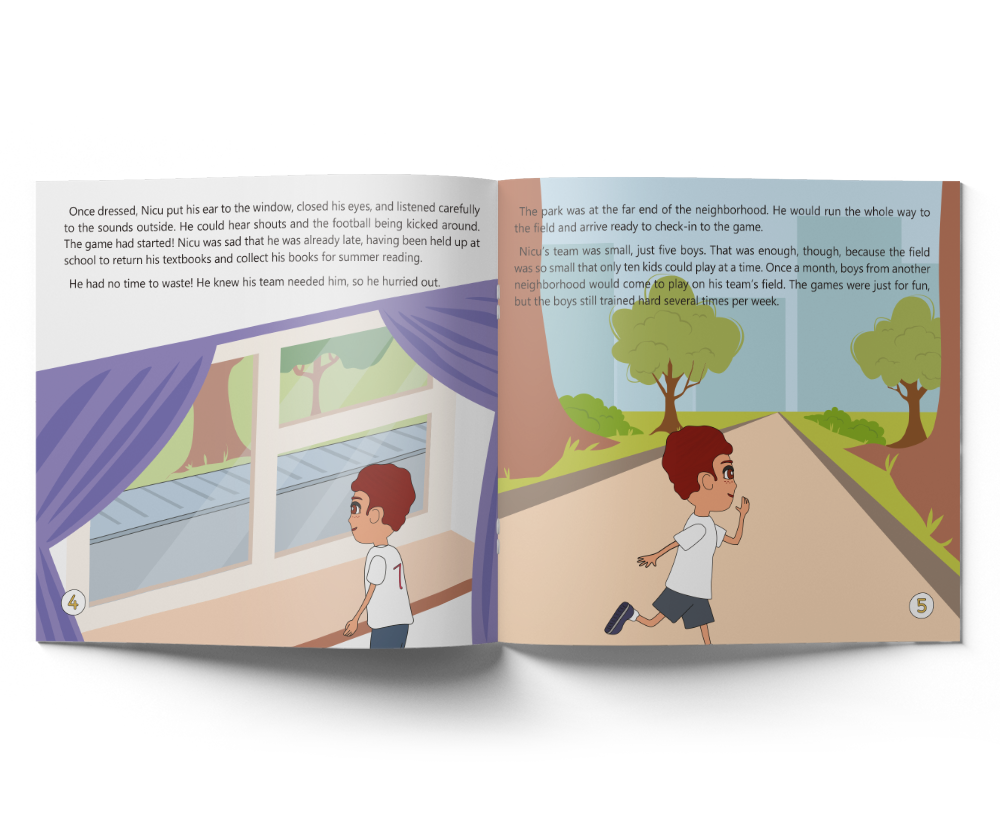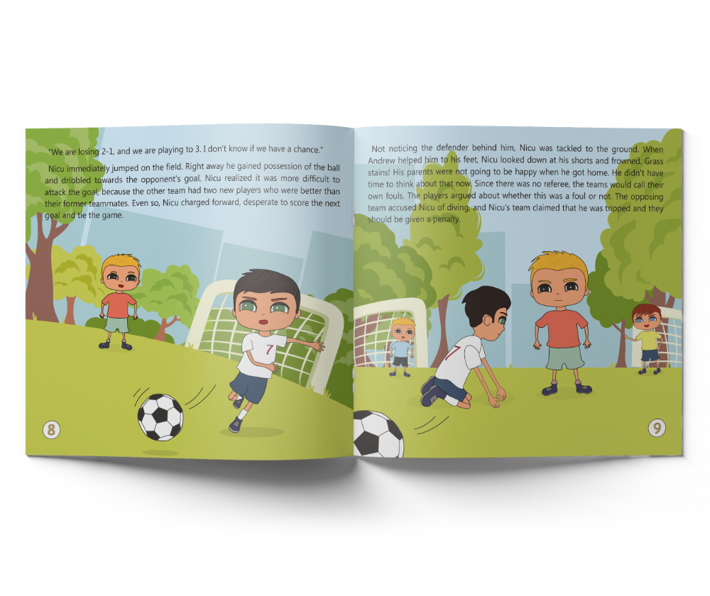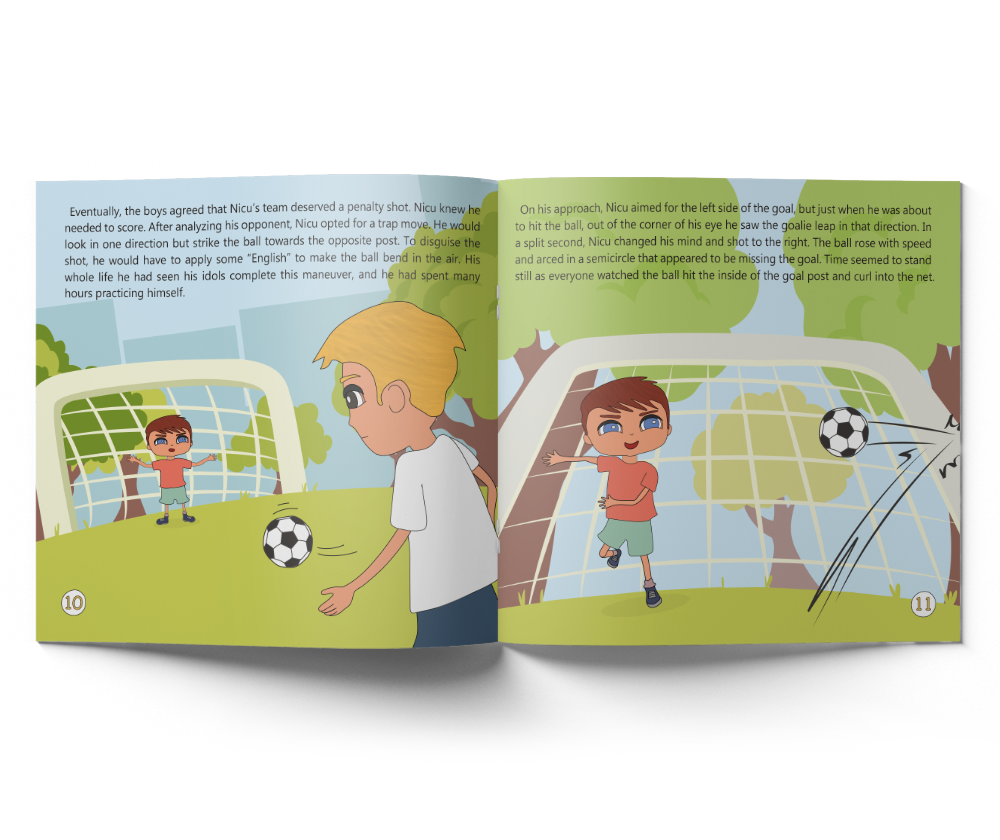 Personalized book where the main character in the story has the same name, gender, eye and hair color as your child. The action-packed story has our hero, with the skills of a champion, at the center of an exciting football match where he is about to make an important decision. It's a story, where little ones learn about how success is achieved when working as a team. This is a physical hardcover book made with love and care: every text and illustration is created by professionals who are passionate about their work. Without the use of AI.