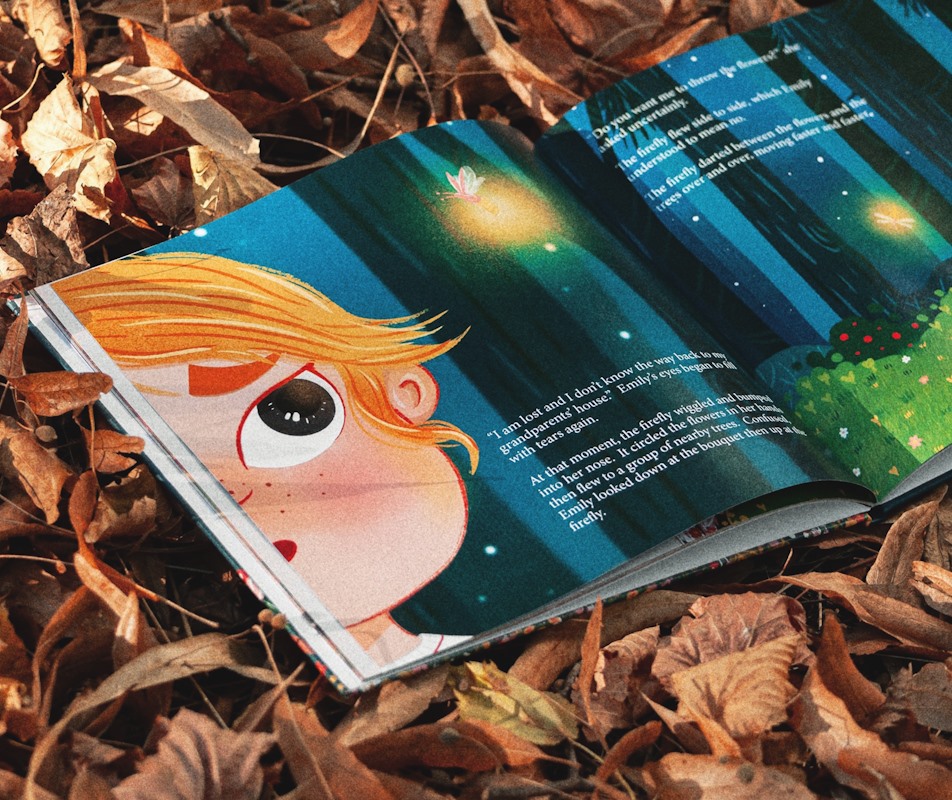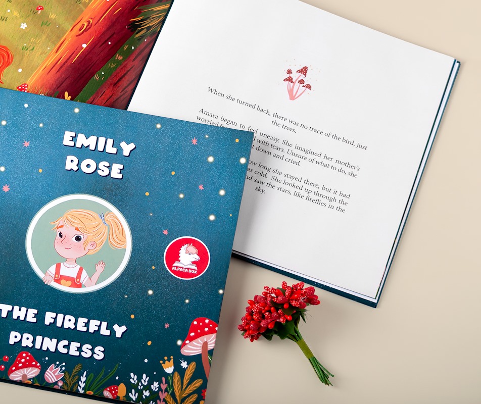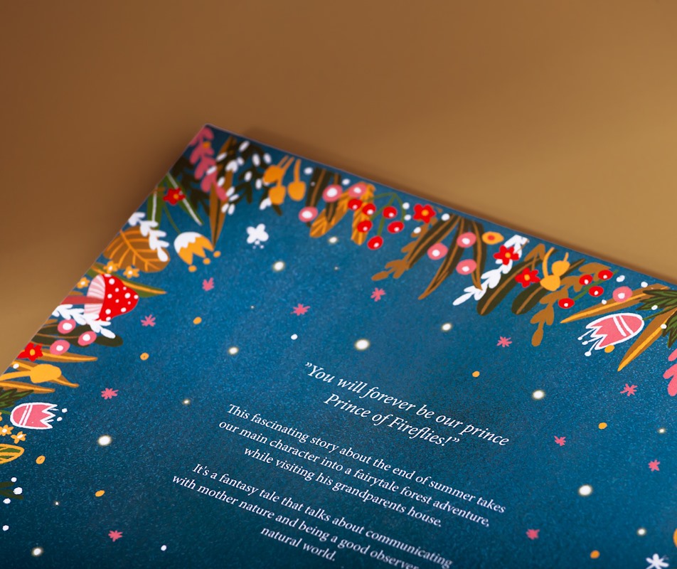 Personalized book. The character has your child´s name, gender, eye and hair color. This fascinating story about the end of summer takes our main character into a fairytale forest adventure, while visiting her grandparents house. It's a fantasy tale that talks about communicating with mother nature and being a good observer of the natural world. This is a physical hardcover book made with love and care: every text and illustration is created by professionals who are passionate about their work. Without the use of AI.